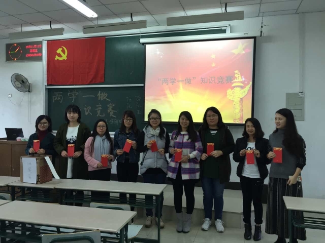 本次知识竞赛由党支书陈姗主持,竞赛分为观看“两学一做”视频、个人闭卷测试和小组快速抢答三个环节,本次竞赛活动以《党章》、《准则》、《条例》、《习近平总书记系列重要讲话》等为主要内容,贴近时事热点,形式新颖、独具创新。竞赛环节结束后对参与成员进行了相应的奖励。