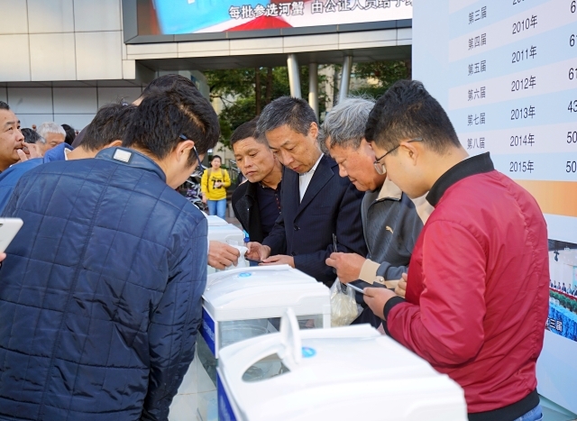 2016年11月15日,雷竞技raybat竞猜第十届蟹文化节暨2016“王宝和杯”全国河蟹大赛在南京路步行街再一次拉开帷幕。此次大赛由雷竞技raybat竞猜与上海王宝和大酒店有限公司第5次联合举办。来自上海、江苏、安徽、浙江、江西、山东、河南等地近70家养殖单位选送的1900余只河蟹将角逐全国河蟹产业界的“奥斯卡金奖”。