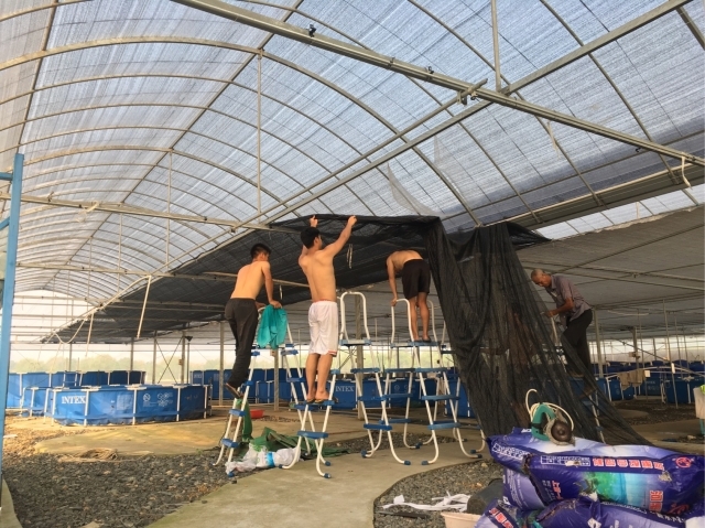 清理池塘淤泥、平整场地、架设围栏、搭建管网、组建循环水养殖系统,几个学习水产的年轻人在瀛东村化身多面手,水电工、泥瓦匠、挑担手,为了节约资金,除了必要的工人外,团队没有请更多的工人,几人主动承担起了基地改造的工作。大学生下地干重活的“新鲜场景”也引来了附近村民的围观,“从来没见过大学生下地干这么重的活。”