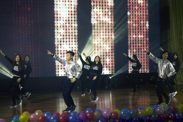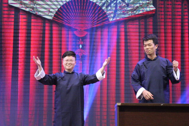 研二的亢逸同学给大家带来了沸腾全场的《在梅边》,轻松欢快的节奏,加上流行的freestyle说唱,嗨翻了全场,带动了全场的气氛。让整场晚会气氛到达了高潮,全场观众不禁跟着音乐摇摆,有着意犹未尽的感觉。