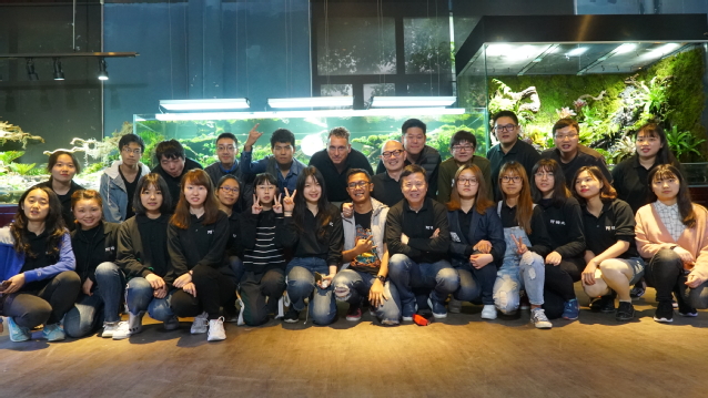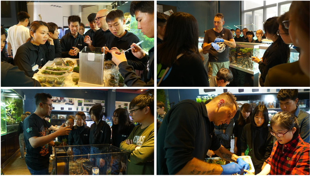 此次培训大师云集。来自德国的水草造景艺术家Oliver现场展示了开缸过程,学员们亲眼见证了3.2米的超大型造景缸从骨架搭建到水草种植,直至注水成景的整个流程,其精巧的构造,合理的水草搭配,焕发的勃勃生机都让人赞叹不已。国际造景大赛冠军、来自澳门的张剑锋先生,向大家详细讲解了水草的相关知识,包括水草分类、挑选、搭配、种植以及后期的维护工作。印度尼西亚造景师Doddy向学员讲解了逆天景色,并分析今后水族造景的趋势动向。资深雨林设计师五月先生向学员展示了雨林缸的魅力,分享雨林缸制作和维护心得,共同探讨了雨林的未来。此外,学员们在造景大师指导下,亲自动手参与造景,在动手能力和造景知识方面收获颇丰。
