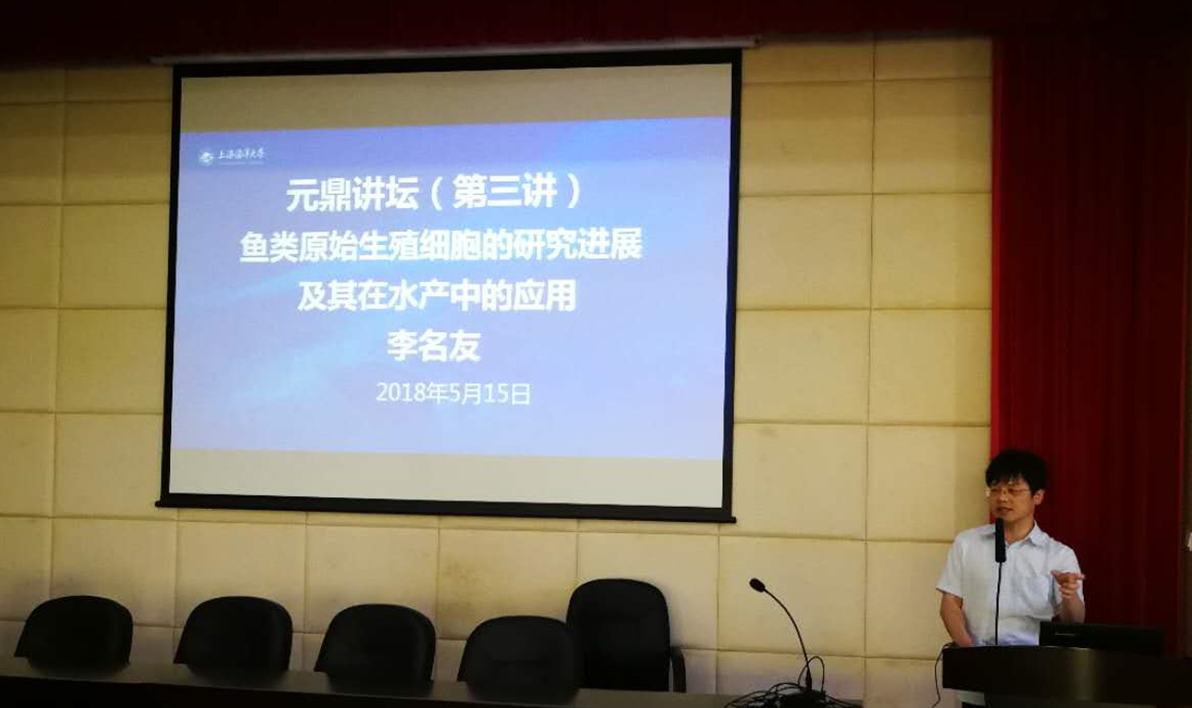 5月15日下午,雷竞技raybat竞猜在A101会议室举办“元鼎讲坛”第三讲,此次元鼎讲坛邀请雷竞技raybat官网李名友研究员主讲,李名友以“鱼类原始生殖细胞的研究进展及其在水产中的应用”为题做了专题报告,雷竞技raybat竞猜部分教师和卓越班学生参加了此次讲座,讲座由谭洪新院长主持。