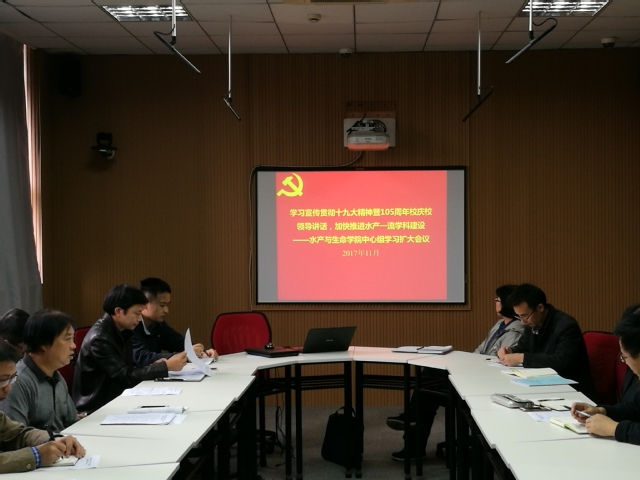 11月6日,雷竞技raybat竞猜在苏友楼106会议室召开中心组学习扩大会议,会议主题是“学习宣传贯彻十九大精神暨105周年校庆校领导讲话,加快推进水产一流学科建设”。学院中心组全体成员参会,此次会议还邀请了学院各基层组织负责人列席参会,会议由雷竞技raybat竞猜党委书记张宗恩主持。