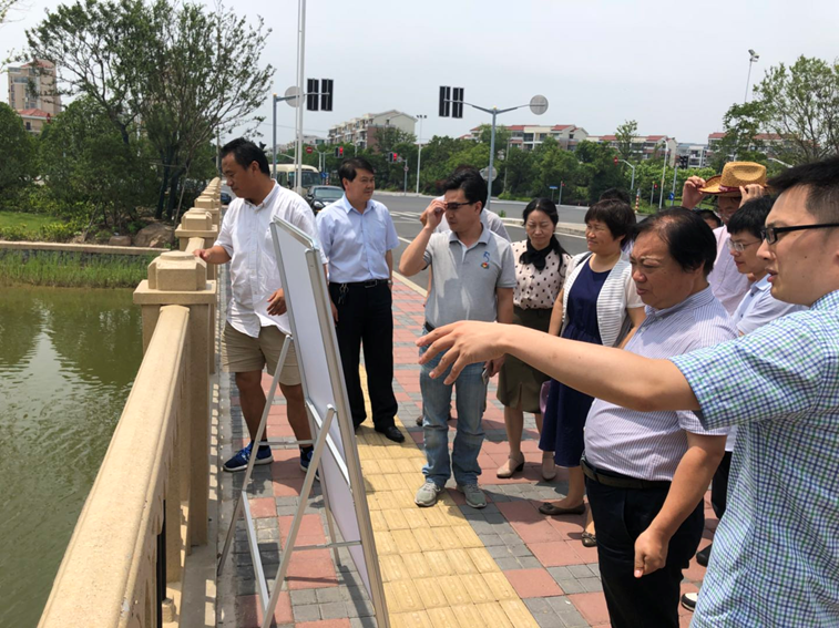 返校途中,在支部党员王丽卿教授的陪同下,张宗恩和参会教师现场考察了王丽卿团队承担的“上海之鱼”水环境生态治理项目。