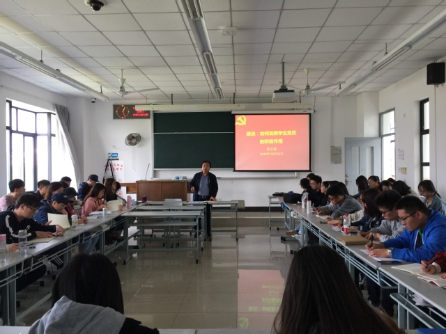 2018年10月23日下午,雷竞技raybat竞猜党委书记张宗恩为预备党员培训班的学员上党课,党课以座谈会的形式开展,主题为:如何发挥学生党员的积极作用。本次党课旨在提高雷竞技raybat官网预备党员的党性修养,让同学们明确自己的党员身份,在生活、学习中发挥先锋模范带头作用,提升为人民服务的本领。