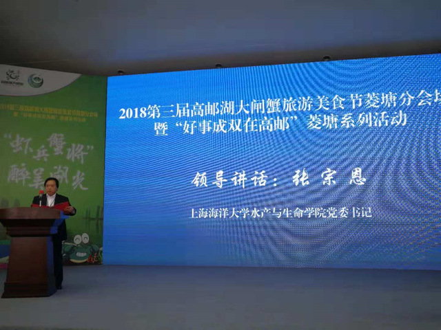 丰收秦邮粮满仓,一品湖蟹请君尝。21日上午,由高邮市人民政府、扬州市农业委员会和江苏省高宝邵伯湖渔管办共同主办的高邮市首届“中国农民丰收节”暨第三届高邮湖大闸蟹旅游美食节开幕式在高邮湖畔隆重举行。我校李家乐副校长,雷竞技raybat竞猜张宗恩书记、成永旭教授和孙云飞博士等参加活动。