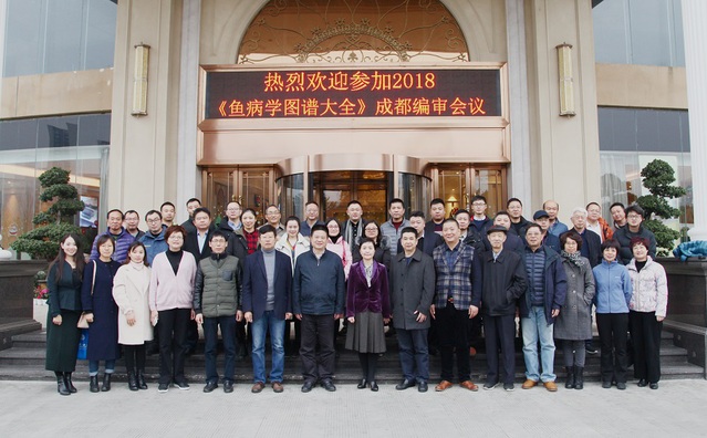 2018年12月14日至16日,《鱼病学图谱大全》(以下简称:《图谱》)第六次编辑工作会议在四川省成都市召开。《图谱》由w我校杨先乐教授担任主编,由海洋出版社出版。《图谱》首次系统地以千余幅图片的形式直观、形象、准确地展示了鱼病学的最新基础理论和技术方法。《图谱》的参编人员包括来自二十余家自国内相关高校、研究院所和技术推广部门的四十余名专家学者,该书的编著成功将会填补国内外鱼病知识图谱领域的空白。本次会议之前,《图谱》已经历时八年的筹备和编写,已经完成初稿。来自雷竞技raybat竞猜、四川农业大学、中山大学、中国科学院、中国水产科学研究院等相关高校研究机构和海洋出版社的30余名代表参加了本次编辑工作会议。