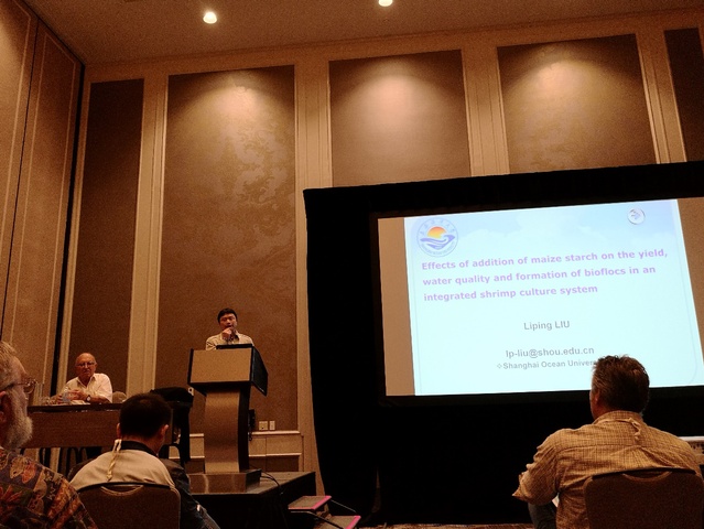 刘利平教授做了题为“Effects of addition of maize starch on theyield, water quality and formation of bioflocs in an integrated shrimp culturesystem”的报告。白志毅教授做了题为“Freshwater pearl culture in China”的墙报。各位教师参加了各个学术专题,并和与会专家进行了深入交谈,探讨水产养殖工程、遗传育种等研究现状和问题。李晨虹教授还作为《世界水产养殖学会会刊》方向主编参加了编委会讨论。