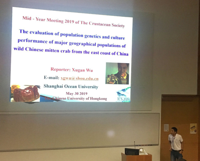 会上,我校吴旭干教授做了主题为“The evaluation ofpopulation genetics and culture performance of major geographical populationsof wild Chinese mitten crab from the east coast of China”的学术报告,通过形态学、线粒体基因组、核基因组从种群遗传学的角度系统的对我国东部沿海地区中华绒螯蟹主要地理种群进行了分析,并对其养殖性能进行了评价。