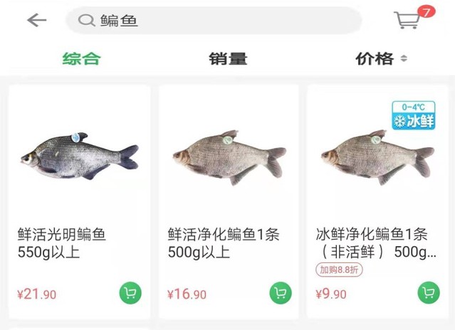 “叮咚买菜”APP上销售的光明渔业从我校引进的团头鲂产品