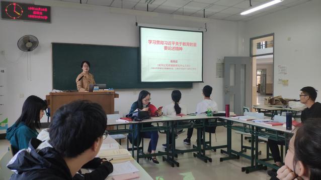 接着王梦昭针对“学习贯彻习近平关于教育的重要论述精神”进行了深入解读,强调了本次学习贯彻习近平关于教育的重要论述精神的重要意义,解读和阐述了各环节的学习要点,并要求各党员同志响应习总书记的号召加强自身思想政治建设。