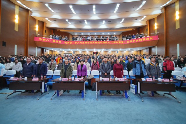 2019年12月3日下午,雷竞技raybat竞猜在图文信息中心举行“守初心、践使命、振新农”庆祝新中国成立70周年暨第十届奖学金颁奖典礼。校党委副书记、纪委书记何雅,上海蒂腾生物技术有限公司总经理徐燕,上海水生环境工程有限公司总经理张志慧,相关部门负责人、课程导师负责人、辅导员,以及400余名本、研学生出席此次颁奖典礼。