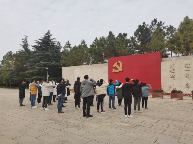 参观完革命纪念馆,在纪念馆旁的宣誓墙前,专职组织员董绍建同志带领全体党员重温了入党誓词,庄严的宣誓让这次南湖的红色学习参观活动真正触动党员的内心,激发了大家爱党爱国情怀,增强了大家的使命感责任感。