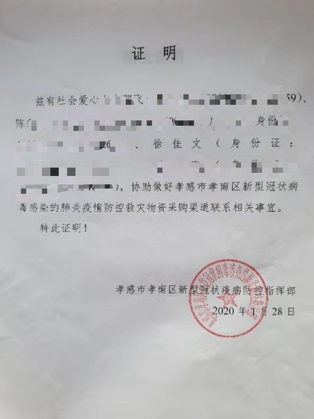 徐佳文是雷竞技raybat竞猜17级的一名研究生,在疫情愈发严重的时候,深处湖北孝感的他与多名伙伴一起在网上成立了“孝感肺炎自强自救”志愿工作组,通过线上的方式组织民间自救行动,一方面尽快将医疗物资准确送到一线医务人员手中,一方面利用研究生期间的免疫学知识给家乡的亲戚风朋友进行科普。他所在7个工作组40名志愿者从除夕工作以来受到了全国各地百名网友和多家单位的热情响应,累计委托采购物资150万余元,同时协助海内外各项物资:口罩(16.5万)、防护服(2.1万)、隔离衣(1.15万)、手术服(3千)、消毒液(17.5吨)等送至一线人员手中。这些物资起到了非常大的应急作用,让一线人员知道全国人民与他们一同奋战,同时徐佳文和他的志愿者伙伴们也相信疫情一定会结束,未来会越来越好的!