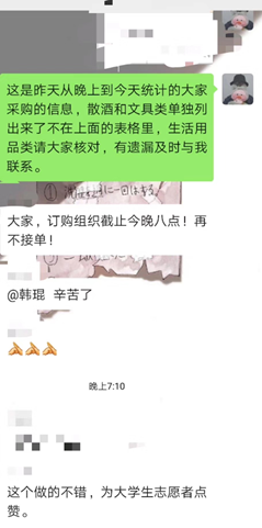 韩琨同学统计村民购物需求微信截图
