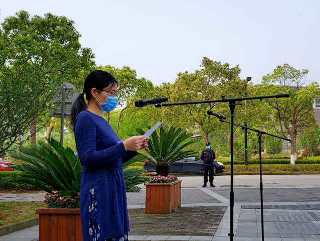 留校学生临时党支部书记车金远作为学生代表发言,她着重介绍了疫情期间,他们13名“90”后组成的留校学生临时党支部,拧成一股绳,攻坚克难、团结一心,为疫情防控工作搭建起坚固的堡垒,为学院100多个实验室的有效运转保驾护航,于此同时对因封校不能返校的师生,帮忙进行文件办理和文件邮寄,主动报名给返校隔离的师生们送饭服务,让师生感受校园温暖与关爱。