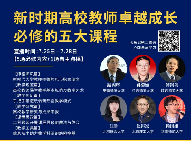 为了进一步贯彻落实《国务院关于加强教师队伍建设的意见》文件精神,帮助青年教师快速适应“互联网+”时代下的教学方式,提高职业素养和教学水平,进一步提升教师课堂育人、课程育人的能力,7月25日至7月28日,在我校雷竞技raybat竞猜组织下,张玮、李慷、温彬、李松林、孙云飞、竹攸汀、李文豪、高大海、孙盛明、王建、黄林彬等11位青年教师参加了《新时期高校教师卓越成长必修的五大课程线上训练营》的线上培训活动。本次培训汇聚了北京理工大学、华南师范大学、陕西师范大学等大学的6位知名高校教育教学领域专家学者,培训内容凝结了他们多年深厚的教育教学研究和实践经验,聚焦了前沿的教学理念、精心的教学设计、有效的教学工具等多个维度的内容。