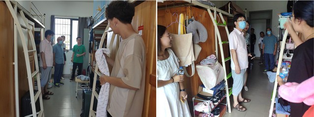 谭洪新和黄旭雄首先向疫情期间同学们对于学校工作的配合和支持表示感谢,同时关切询问学生的返校方式、搬迁状况等,在这个抗疫特殊时期,针对当前的疫情防控形势,黄旭雄叮嘱同学们要一如既往地增强个人防护意识,及时和老师、家人沟通近况。张宇峰与辅导员一起走访多个宿舍区,实地了解学生搬迁状况,并提醒辅导员重视学生返校前后的安全,并关注返校后学生的需求,为学生返校后安心开展科研学习提供坚实的基础。