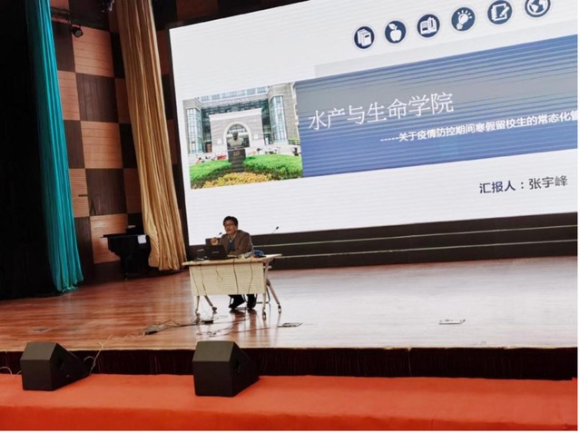 张宇峰首先强调寒假期间学生需遵守“非必要不留校”、“非必要不提前返校”、“非必要不聚集”、“非必要不外出”等原则。留校学生要做到勤通风,不串寝,不聚集;依规做好晚点名、自测体温等相关疫情防控要求。会议进一步明确了寒假留校学生需要注意的校园防疫要求、实验室相关管理规定及安全事项等。