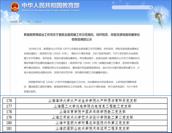 1月12日,教育部思想政治工作司发布了关于首批全国党建工作示范高校、标杆院系、样板支部培育创建单位验收结果,雷竞技raybat竞猜水产种质与育种系党支部顺利通过首批全国“样板支部”验收。