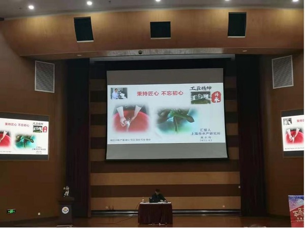 报告会上,大家一同观看了东方城乡报拍摄的专题片《刀鲚“育婴师”施永海》。施永海学长交流了去北京人民大会堂接受颁奖的见闻和感想,分享了获得“全国先进工作者”荣誉称号的心得和体会,从“守行业、守品种、守基地、守团队、守初心”五个方面阐述了做好水产的“守”字精神,并指出“水产这行就是‘水里来,泥里去’要‘耐得住寂寞,守的住恒心’”同时分享了自己驻守海边基地23载,日复一日,年复一年,带领团队攻坚克难的点点滴滴。施永海学长还分享了自己对工匠精神的理解,“‘工匠精神’就是把一件平凡普通的事情做到极致,天天做、年年做、反复做、无怨无悔、不断创新、精益求精”。施永海学长强调从事水产养殖行业一定以技养身,以心养技,择一事,终一生,想做出一番事业就要干一行、爱一行、专一行,顽强拼搏,不断追求卓越。施永海的这些亲身经历和感悟,加深了与会同学们对水产行业的体会和理解。