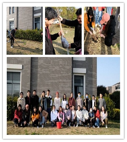 由于事先已和物业有关部门做好沟通,必备的工具也已准备好,接下来就是选取植树位置。我们选取了学院楼旁边的空地,位置选好后,就开始进行一系列植树活动。活动现场,每个人都热情高涨,挖坑、搬树苗、挥锹铲土、填土压实、提水浇灌,大家三俩一组,通力合作,干劲十足。