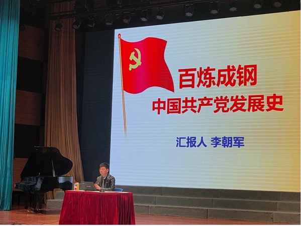 上午,培训班第一节课在大学生活动中心举行,来自第二工业大学副教授李朝军老师以“百炼成钢:中国共产党百年发展史”为主题为大家授课。李老师从引论“欲知大道,必先为史”,到本论“矢志践行初心使命的一百年、筚路蓝缕奠基立业的一百年、创造辉煌开辟未来的一百年”,最后结论“百炼成钢”,详细叙述了中国共产党百年发展史上的点点滴滴。
