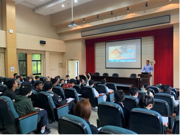 关教授幽默风趣地位大家讲解了中华鲎的保育工作,让大家有身临其境的感觉。同学们积极思考,并与关教授互动,现场气氛十分活跃。