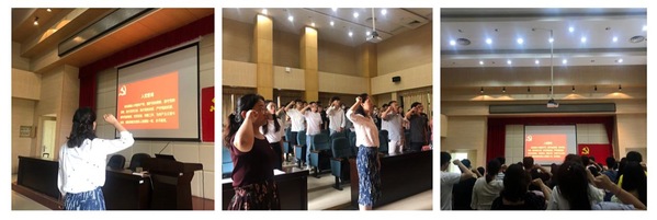 最后,全体党员重温入党誓词。优秀研究生毕业生党员代表王婷同志带领全体毕业生党员面向党旗庄严宣誓。