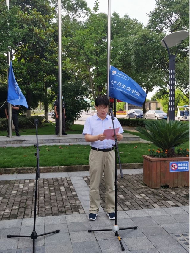 院党委书记黄旭雄致辞,他表示,在收看庆祝建党100周年大会后心情十分激动,倍感自豪和骄傲,备受鼓舞和鞭策,深切感受到百年征程波澜壮阔、伟大复兴前景可期、使命光荣重任在肩。黄旭雄指出,新时代新征程,学院要坚持立德树人,借新农科改革之东风,对标一流本科建设任务,强化三全育人意识,凝心聚力构建学院一流人才培养体系,培育更多知农爱农兴农的高素质人才。黄旭雄强调,新百年学院将继续对接国家乡村振兴、生态文明和长三角一体化发展等国家成略,依托地方高水平大学建设任务,聚焦十四五国家重点研发计划等重大科研任务,破解制约我国水产高质量发展的基础科学问题和关键共性卡脖子技术;发挥学科和专业特长,传承教授博士服务团的优良作风和做法,扩大学校学科服务社会经济发展的影响力和美誉度。最后黄旭雄对学院师生寄予厚望,他希望广大青年教师和青年学生,要把个人的小我融入集体的大我、祖国的大我之中,与学院同发展,与时代同步伐、与人民共命运,更好实现人生价值。”