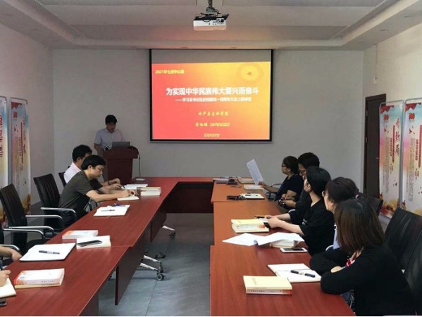 院党委书记黄旭雄以“为实现中华民族的伟大复兴而奋斗”为主题,带领大家深入学习了习近平总书记在庆祝中国共产党成立100周年大会上的重要讲话,从习近平总书记讲话的重大意义和重要地位、精髓和主要内容以及如何全面贯彻落实总书记重要讲话精神三个方面做了详细阐述。在庆祝大会上,习近平总书记深情回顾中国共产党百年奋斗的光辉历程,高度评价一百年来中国共产党团结带领中国人民创造的伟大成就,并庄严宣告“我们实现了第一个百年奋斗目标,在中华大地上全面建成了小康社会”,精辟概括伟大建党精神,全面总结以史为鉴、开创未来的“九个必须”,号召全体中国共产党员在新的赶考之路上为党和人民争取更大光荣。