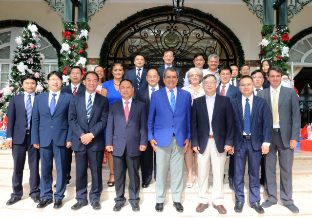 12月19日,访问团与天瑞集团、启东访问团全体成员出席了法波主席在主席府举行的官方会谈,法波费里奇主席对雷竞技raybat竞猜给予法属波利尼西亚在人才培养方面的支持表示感谢。钟俊生向费里奇主席汇报了与法波海洋资源与开发局、法波海洋职业培训中心的会谈和豪岛现场考察的成果,表示将继续做好接收第二批法波学生的各项准备和培训工作,并希望2020年实质启动与法波海洋资源与开发局合作的“南太水产养殖职业教育培训项目”。同时参加会谈的中国驻帕皮提领事馆馆长领事沈智良先生、天瑞投资管理有限公司董事长王成先生和启东访问团的石光辉高级经济师也各自汇报了相关成果。