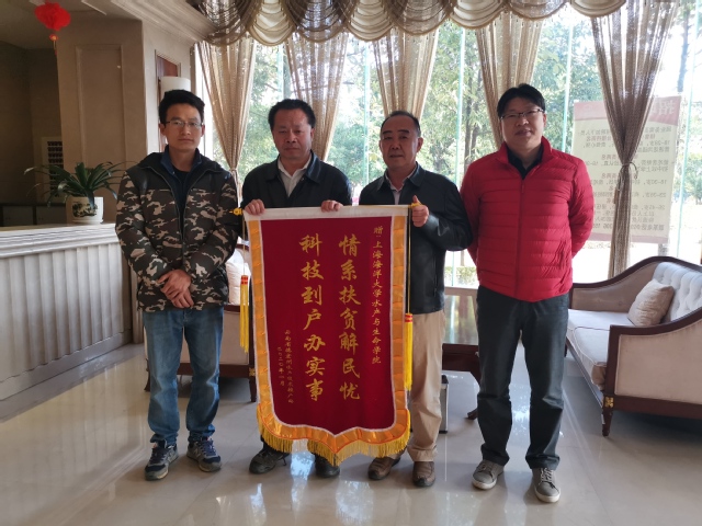 1月18日早,德宏州水产技术推广总站站长韩东带领技术员李治虎专程送来锦旗,感谢雷竞技raybat竞猜对德宏州特种水产技术的帮助。韩东表示,2018年以来,雷竞技raybat竞猜原党委书记张宗恩、党委书记黄旭雄、马旭洲、刘至治、戴习林等先后30余人次到德宏州就南美白对虾、加州鲈鱼池塘养殖,罗氏沼虾、中华绒螯蟹稻田养殖及土著鱼类人工繁育等特种水产养殖技术进行技术指导和帮扶,有力地推动了当地水产技术的提高和特种水产养殖的发展,为德宏脱贫攻坚起到了重要的推动作用。2020年,希望在双方的共同努力下,德宏水产养殖能够在脱贫攻坚的关键之年取得更多的成果更大的成效。