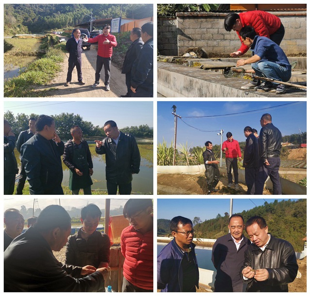 黄旭雄、马旭洲先后前往德宏州芒市芒市镇、遮放镇,瑞丽市畹町镇等地进行技术指导。在遮放镇街道5队傣族养殖户孟岩回的稻田里,黄旭雄、马旭洲详细查看并询问了其稻田养蟹的情况,就水草栽培、饲料投喂等工作对其进行了具体的指导。孟岩回对雷竞技raybat竞猜一年多以来对其的技术指导和帮助表示真诚的感谢,同时表示,脱贫靠大家,他正在做工作,2020年将努力用自己的亲身经历说服带动更多的村民开展稻田综合种养,把脱贫致富路走得更长更宽。在芒市芒市镇大湾村锅盖石稻田特种水产稻田养殖基地,黄旭雄、马旭洲了解了2019年底投放的扣蟹生长情况,对目前存在的幼蟹上岸状况进行分析并就问题的解决提出建议,同时对下一步罗氏沼虾的养殖情况进行沟通。在德宏州土著鱼人工驯养繁殖基地,黄旭雄一行听取了州水产技术推广站技术人员对土著鱼驯养繁殖情况的介绍,对这一工作的深入推进与其进行了深入的交流。黄旭雄一行还去查看了瑞丽市畹町镇混板村委会弄片沈国强的稻田养蟹、罗氏沼虾养殖基地建设情况,对其建设和进一步深入开展进行了指导。