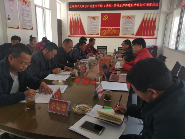 1月17日下午,黄旭雄一行在芒市水产技术推广站与德宏州水产技术推广人员进行座谈,交流了在雷竞技raybat竞猜的技术支持下2019年德宏州特种水产技术推广开展的工作和取得的成绩,并就2019年工作存在的问题及2020年的工作任务、工作重点和工作推进计划进行了深入的交流研讨。对于与会人员提出的虾苗标粗和蟹苗培育基地建设、虾蟹养殖组织化产业化程度较低、结合地方特色的优势水产品开发等问题,黄旭雄一一进行了回应,同时就如何通过特种水产养殖技术的普及带动更多的村民脱贫扶志提出了建设性的意见。